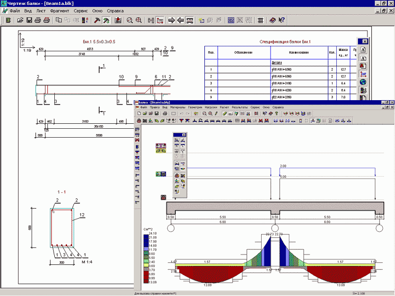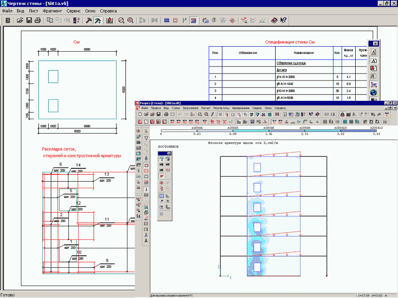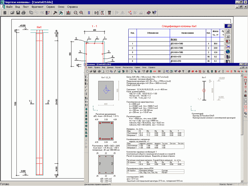 BUILDING module. Analysis and design of reinforced concrete elements. Analysis results in the form of working drawings.
