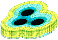 Выполнен комплекс линейных и физически нелинейных расчетов ¼ круглого сплошного ж/б ростверка на сваях под металлический бак, а также линейный расчет системы ж/б ростверков на сваях под металлические баки под 3 резервуара диаметром 50,5 м каждый для Петербургского нефтяного терминала.