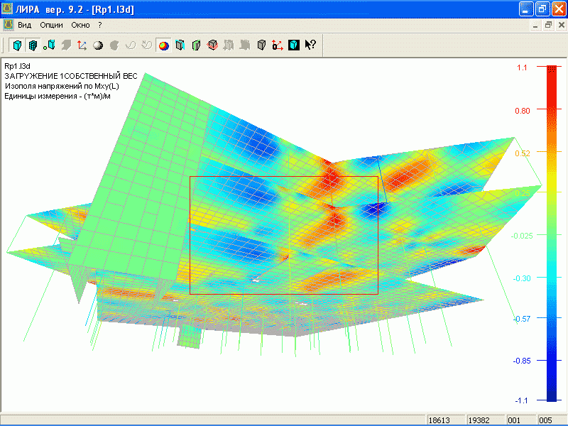 • специализированный процессор МОСТ, позволяющий строить поверхности влияния в назначенных пользователем элементах мостовой конструкции от подвижной нагрузки, определяет невыгодные сочетания усилий и перемещений;