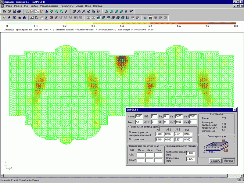 • специализированный процессор МОНТАЖ-плюс, позволяющий отслеживать напряженное состояние сооружения в процессе его возведения, как-то: многократное изменение расчетной схемы, установка и удаление временных опор и т.п. Этот процессор позволяет также проводить компьютерное моделирование возведения высотных зданий из монолитного железобетона с учетом изменений жесткости и прочности бетона, вызванных временным замораживанием уложенной смеси и другими факторами;