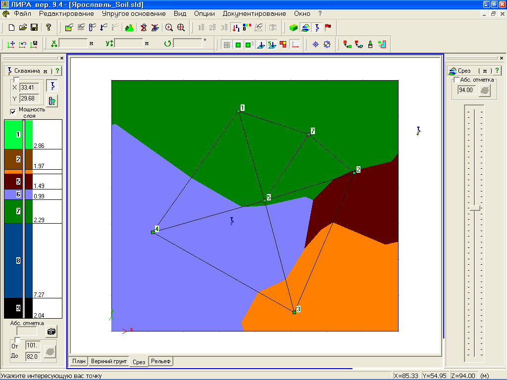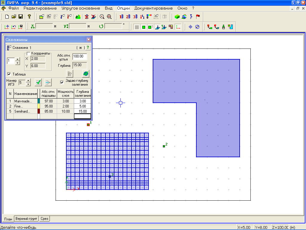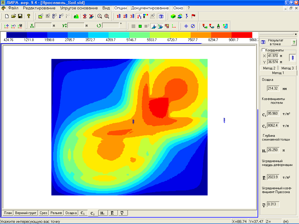 Система ГРУНТ ориентирована на автоматическое определение переменного по области фундаментной плиты коэффициента постели.